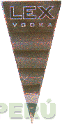 El logotipo conformado por la denominación LEX VODKA escrita en letras características al interior de una figura triangular con franjas horizontales, todo en los colores negro, plateado, gris y marrón; conforme al modelo adjunto