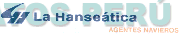 El logotipo conformado por la letra L diseñada de forma curva e inclinada, la cual atraviesa dos barras paralelas diagonales formando una letra H; y la denominación LA HANSEÁTICA AGENTES NAVIEROS escrita en letras características, todo en los colores azul, blanco y dorado; conforme al modelo adjunto