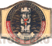 La denominación LICOR CHACHAPOYANO escrita en letras características, en la parte central la figura representativa del símbolo de los chachapoyas rodeado de paredes de piedra con un vaso en las manos, debajo del mismo la denominación LOS TRONCOS escrita en letras características y en la parte inferior la frase SABOR Y ESENCIA DE LO NUESTRO... 100% NATURAL escrita en letras características, y a cada lado de la misma la figura de tres rombos, todo dentro de dos figuras circulares, una de menor tamaño que la otra, las cuales a su vez se encuentran inmersas en una figura irregular, en los colores dorado, rojo, negro, gris, anaranjado y marrón; conforme al modelo adjunto