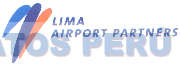 El logotipo conformado por la denominación LIMA AIRPORT PARTNERS escrita en letras característica en color azul y la representación estilizada de un ala en forma trial en los colores celeste, azul y rojo respectivamente, todo sobre fondo blanco, conforme al modelo adjunto
