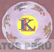 El logotipo conformado por la figura de un plato en el cual se aprecian las figuras estilizadas de frutas, flores y hojas alrededor del mismo y al centro se aprecia un círculo con las letras LK escritas en forma característica, todo dentro de un recuadro, en los colores amarillo, rojo, azul, verde, melón, blanco y guinda; conforme al modelo adjunto