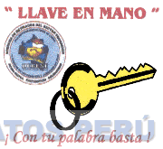 La denominación LLAVE EN MANO escrita en letras características, y la frase CON TU PALABRA BASTA escrita en letras características, sobre ella se aprecia la figura de una llave y un logotipo circular conteniendo dos manos que se estrechan con el fondo de un libro, en los colores amarillo, negro, rojo, celeste y azul; conforme al modelo adjunto