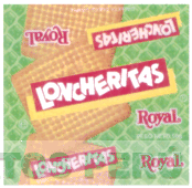 LA ETIQUETA CON LA DENOMINACION LONCHERITAS ROYAL, FIGURA DE UN CUADRADO DE FONDO VERDE, CON CUADRADITOS PEQUEÑOS Y SE APRECIA LA FIGURA DE TRES GALLETAS Y RECTANGULOS DE FONDO ROJO FILETE AMARILLO, SOBRESALIENDO LA PALABRA LONCHERITAS EN BLANCO, Y ROYAL EN ROJO, SEGUN MODELO ADJUNTO,
