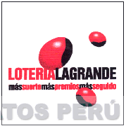 EL DISEÑO DE TRES HUAYRUROS DE DIVERSOS TAMAÑOS, DE COLOR ROJO Y NEGRO, AL CENTRO SE APRECIA LA DENOMINACION LOTERIALAGRANDE ESCRITA EN LETRAS CARACTERISTICAS EN MAYUSCULAS, SIENDO LA PRIMERA DENOMINACION DE COLOR ROJO Y LAS RESTANTES DE COLOR NEGRO; DEBAJO, EN LETRAS MINUSCULAS DE COLOR ROJO Y NEGRO SE LEE MASSUERTEMASPREMIOSMASSEGUIDO ESCRITA EN LETRAS CARACTERISTICAS; CONFORME AL MODELO ADJUNTO