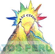 El logotipo conformado por la denominación LUZ COLOR escrita en letras características, en la parte inferior se aprecian dos cerros con un río y al fondo del logo se aprecia la figura de un sol radiante, todo en los colores anaranjado, rojo, azul, verde, marrón, amarillo y celeste; conforme al modelo adjunto