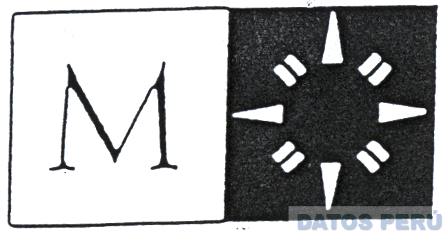 LA FIGURA RECTANGULAR DE DOS CAMPOS, EN EL CAMPO IZQUIERDO SE MUESTRA UNA LETRA M Y EN EL CAMPO DERECHO UNA FIGURA DE CUATRO PUNTAS Y OCHO LINEAS DISPUESTAS CIRCULARMENTE, CONFORME AL MODELO ADJUNTO