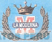 El logotipo conformado por la denominación LA MODERNA escrita en letras características dentro de una figura rectangular con bordes curvos y sobrepuesta a la letra M; en la parte superior se aprecia la figura estilizada de una corona y sobre las puntas tres círculos; todo entre la figura de dos espigas; en los colores celeste, dorado, verde, rosado, amarillo, rojo, azul, blanco y negro; conforme al modelo adjunto
