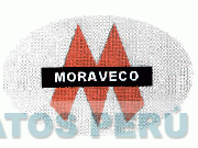El logotipo conformado por la denominación MORAVECO escrita en letras características en color blanco, sobre una franja rectangular de color negro, todo sobrepuesto a una letra M estilizada en color rojo y al interior de un ovalo con fondo gris; conforme al modelo adjunto