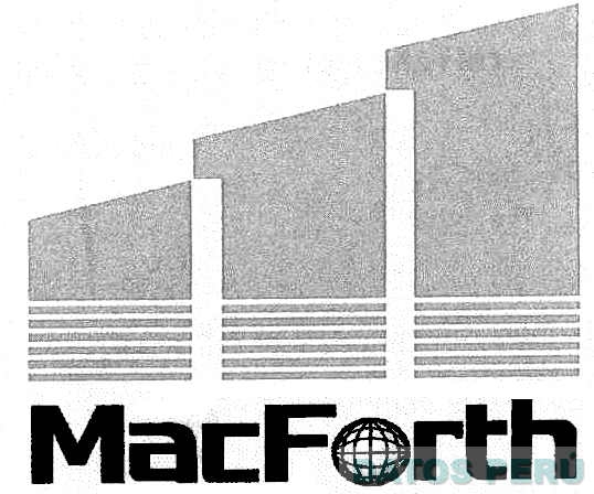 El logotipo constituido por la denominación MACFORTH escrita en letras características acompañada de tres figuras irregulares mostradas de manera ascendente; conforme al modelo adjunto (sin reivindicar colores)