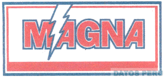 La denominación MAGNA y figura de rayo, en letras características, dentro de un doble rectángulo, en colores blanco, rojo y azul; conforme al modelo adjunto