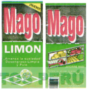EL ENVASE CONSTITUIDO POR LA DENOMINACION MAGO EN LETRAS CARACTERISTICAS COLOR ROJO CON SOMBRA BLANCO, SOBRE UN FONDO COLOR PLATEADO DEBAJO LA DENOMINACION LIMON Y LA FIGURA DE UN LIMON CORTADO POR LA MITAD SOBRE UNA FIGURA ROMBOIDAL, DIVIDIDA EN 4 PARTES IGUALES SOBRE UN FONDO COLOR VERDE, CON INDICACIONES SOB