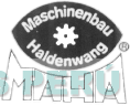LA DENOMINACION MAHA ESCRITA EN LETRAS ESTILIZADAS DEBAJO DE UNA FIGURA OJIVAL DE FONDO OSCURO QUE CONTIENE LA DENOMINACION MASCHINENBAU HALDENWANG Y LA FIGURA DE UN ENGRANAJE; CONFORME APARECE EN EL FACSIMIL ADJUNTO,
