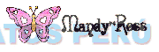 El logotipo conformado por la denominación MANDY escrita en letras características seguida por una línea horizontal en cuyos extremos se aprecian dos líneas verticales, seguida por la denominación ROSS escrita en letras características y al lado izquierdo, la representación estilizada de una mariposa, todo en los colores rosado, anaranjado, blanco y negro; conforme al modelo adjunto