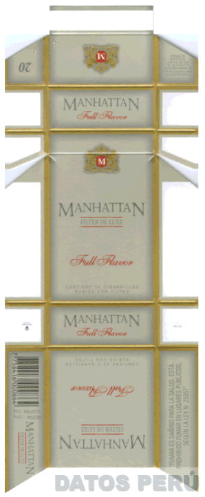 LA ETIQUETA RECTANGULAR DE COLOR BEIGE CON BORDES DORADOS QUE CONTIENE LA DENOMINACION MANHATTAN, ESCRITA EN LETRAS CARACTERISTICAS Y EN COLOR NEGRO DEBAJO APARECE LA DENOMINACION FILTER DE LUXE EN FORMA CARACTERISTICA Y EN MEDIO DE DOS FRANJAS HORIZONTALES DE COLOR ROJO; EN LA PARTE SUPERIOR DE LA ETIQUETA APARECE UN ESCUDO EN COLOR DORADO QUE CONTIENE LA LETRA M EN COLOR BLANCO SOBRE UN FONDO DE COLOR ROJO; EN LA PARTE INFERIOR DE LA ETIQUETA APARECE LA DENOMINACION FULL FLAVOR EN COLOR ROJO; CONFORME AL MODELO ADJUNTO,