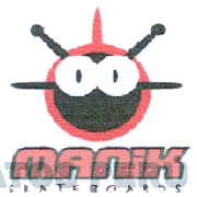 El logotipo conformado por la figura estilizada de un rostro humano en colores rojo, negro y blanco y debajo de ella la denominación MANIK escrita en letras características en color rojo con bordes negros y debajo de ella la palabra SKATEBOARDS escrita en letras negras; conforme al modelo adjunto