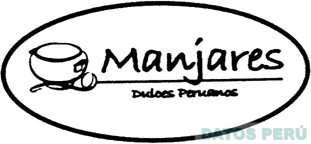 La etiqueta oval conformada por la denominación MANJARES DULCES PERUANOS donde la palabra MANJARES esta escrita en letras características sobre una línea horizontal al lado izquierdo el dibujo de un cántaro y debajo de ésta una cuchara; conforme al modelo adjunto