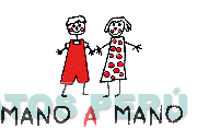 El logotipo conformado por la denominación MANO A MANO escrita en letras características con la representación estilizada de dos niños de distintos sexo, en la combinación de colores rojo, blanco y negro; conforme al modelo adjunto