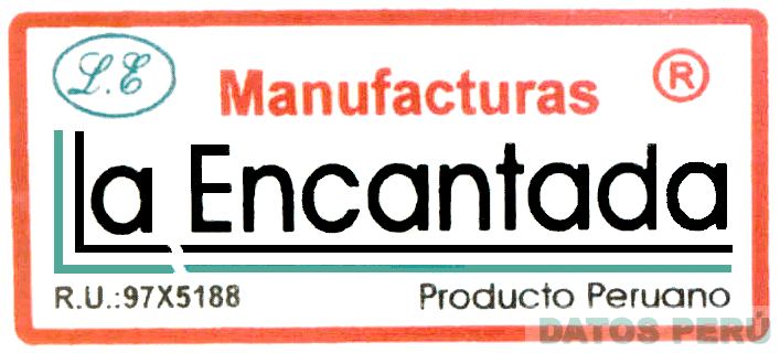 EL LOGOTIPO CONFORMADO POR LA DENOMINACION MANUFACTURAS LA ENCANTADA ESCRITA EN LETRAS CARACTERISTICAS SUBRAYADA, A CUYO LADO SUPERIOR IZQUIERDO SE APRECIA LAS LETRAS L.E. DENTRO DE UN CIRCULO OVALADO, TODO DENTRO DE UN RECUADRO EN LOS COLORES ROJO, NEGRO Y VERDE; CONFORME AL MODELO ADJUNTO