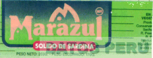 La etiqueta de fondo verde con líneas horizontales azules que contiene un recuadro de fondo azul y verde claro, el mismo que contiene la denominación MARAZUL escrita en letras características color melón, cuya letra M inicial está delimitada parcialmente por una cabeza de pez; sobre dicha denominación la letra M estilizada que representa la cabeza de un pez color melón; debajo la descripción en letras blancas y en fondo rojo del tipo de preparado; según modelo adjunto