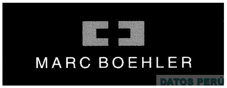El logotipo conformado por la denominación MARC BOEHLER escrita en letras características y dos figuras angulares, todo dentro de una figura rectangular, sin reivindicar colores; conforme al modelo adjunto