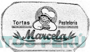 La etiqueta semi ovalada dentro de la cual se aprecia en la parte central la figura característica de una mujer vestida de pastelera sobre un círculo, y debajo de ella la denominación MARCELA y la figura de espigas de trigo y sobre ella una doble línea horizontal; conforme al modelo adjunto