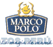 El logotipo conformado por la denominación MARCO POLO escrita en letras características y dentro de una figura rectangular de doble marco; en la parte superior se aprecia la silueta de un barco rodeado por laureles; en la parte inferior se precia la frase LA MAGIA DE MAMÁ escrita en letras características; todo en los colores azul, blanco y amarillo; conforme al modelo adjunto