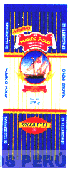 LA ENVOLTURA DE FORMA RECTANGULAR DIVIDIDO EN TRES ZONAS, EN LAS ZONAS LATERALES EL FONDO AZUL CON LINEAS DELGADAS DE COLOR AMARILLO Y EN LA ZONA CENTRAL ES DE FONDO CLARO CON LINEAS DE COLOR AMARILLO Y ROJO, EN LA ZONA CENTRAL SE ENCUENTRA LA FIGURA DE UN BARCO ENMARCADO EN UN CIRCULO OVOIDE, CON EL FONDO CELESTE Y AZUL, CON LAS INSCRIPCIONES EN LA PARTE SUPERIOR DE MARCO POLO Y EN LA PARTE INFERIOR PASTA FORTIFICADA CON LETRAS DE COLOR AMARILLO Y FONDO ROJO, SEGUN MODELO ADJUNTO,
