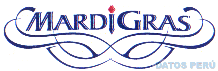 LA DENOMINACION MARDIGRAS ESCRITA EN LETRAS CARACTERISTICAS Y EL DISEÑO DE LINEAS ESTILIZADAS DONDE EL PUNTO DE LA LETRA I LO CONSTITUYE LA FIGURA DE UN ROMBO, EN LOS COLORES AZUL Y ROJO; CONFORME AL MODELO ADJUNTO