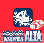 El logotipo conformado por la denominación MAREA ALTA escrita en letras características acompañado por tres trazos irregulares a manera de ondas y dentro de una figura ovalada la bandera del Perú y la denominación PRODUCTO PERUANO, sobre ellos la figura cuadrangular conteniendo la figura de la cabeza de un pez rodeado por trazos irregulares que asemejan gotas de agua, todo dentro de una figura cuadrangular en los colores azul, rojo y blanco; conforme al modelo adjunto