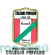 El logotipo conformado por la figura de un escudo el cual se encuentra dividido en cinco segmentos; en el segmento superior se aprecia la denominación COLEGIO PRIVADO USE 05 escrita en letras características; en medio, en la parte superior se aprecia la figura de un libro abierto y en la parte inferior la denominación MARISCAL CACERES escrita en letras características; todo atravesado por un segmento en forma diagonal; y como base se aprecia la denominación MARISCAL CACERES COLEGIO PRIVADO escrita en letras características, todo en los colores negro, amarillo, rojo, verde y blanco; conforme al modelo adjunto