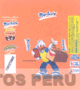 La envoltura desplegada conformado por las denominaciones MARINELA RAYITA y MANKEKE escrita en letras características y figura estilizada de un pato humanizado sosteniendo una bolsa y espolvoreando grageas a un keke y demás leyendas alusivas al producto sin reivindicar, todo en la combinación de colores anaranjado, amarillo, rojo, blanco, marrón, celeste y azul; conforme al modelo adjunto.