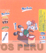 La envoltura desplegada conformada por las denominaciones MARINELA, RAYITA y MANKEKE escrita en letras características y figura estilizada de un pato humanizado atajando una pelota frente a un keke relleno, todo en la combinación de colores anaranjado, amarillo, rojo, blanco, marrón, celeste, verde y azul; conforme al modelo adjunto.