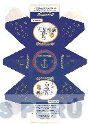 La caja empaque que contiene en la parte central la denominación MARINITO escrita en letras características en donde la letra O se encuentra representada por la figura estilizada de un timón, y debajo de esto se aprecia el diseño de un ancla, todo dentro de un círculo; en la parte superior e inferior se aprecia la denominación MARINITO escrita en letras características en donde la letra O se encuentra representada por la figura estilizada de un timón, debajo de esto y dentro de una figura ovalada se observa la representación estilizada de un hombre y un niño sosteniendo un panetón, asimismo en las partes laterales del empaque se aprecian diversas anclas, además de frases alusivas al producto, todo en la combinación de colores azul, dorado, rojo, blanco, negro y amarillo; conforme al modelo adjunto