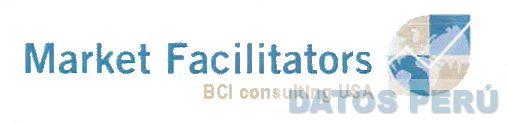 La denominación MARKET FACILITATORS escrita en letras características y el diseño estilizado de un mundo dividido en cuatro partes con una línea que atraviesa el diseño, en la parte inferior la denominación BCI CONSULTING USA escrita en letras características, sin reivindicar la denominación USA, todo en la combinación de colores azul, marrón, blanco y plomo; conforme al modelo adjunto