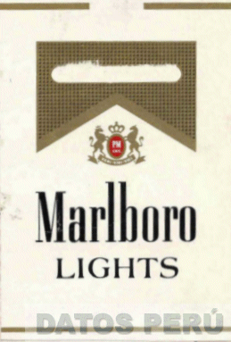 La denominación MARLBORO LIGHTS inscrita en la parte inferior de una etiqueta blanca, debajo de un escudo oro y rojo que esta al centro, debajo de un chevron de color oro, conforme al facsímil adjunto