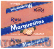 LA ETIQUETA CON LA DENOMINACION MARQUESITAS ROYAL, NARANJA, FIGURA DE UN CUADRADO DE FONDO NARANJA,Y FRANJAS, TRANSVERSALES DE FONDO AZUL Y LINEA BLANCA SOBRESALIENDO LA PALABRA MARQUESITAS,EN BLANCO Y AL CENTRO SE APRECIA LA FIGURA DE DOS NARANJAS Y UNA PARTIDA,Y LA PALABRA ROYAL EN AZUL, SEGUN MODELO ADJUNTO,