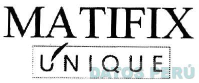El logotipo conformado por la denominación MATIFIX UNIQUE escrita en letras características donde la palabra UNIQUE se encuentra dentro de una figura rectangular y sobresaliendo del extremo superior derecho de la letra U se aprecia una pestaña; conforme al modelo adjunto