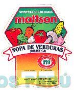 La etiqueta que contiene la denominación MATTSON escrita en letras características, debajo de la cual se aprecia la representación estilizada de unos vegetales, debajo de los cuales aparece la representación de una cinta, más abajo dentro de dos figuras ovaladas se aprecia la representación de la letra M en forma característica alrededor de al cual aparece la denominación PROCESO DE HIGIENE HACCP escrita en letras características (sin reivindicar); todo ello en la combinación de colores verde en distintas tonalidades, rosado, amarillo, anaranjado, rojo, negro, blanco, morado, beige; conforme al modelo adjunto