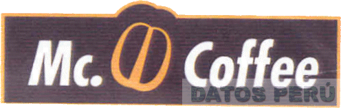 EL LOGOTIPO CONFORMADO POR LA DENOMINACION MC. COFFEE ESCRITA EN LETRAS CARACTERISTICAS SEPARADAS POR LA FIGURA ESTILIZADA DE UN GRANO DE CAFE; TODO EN LA COMBINACION DE COLORES BLANCO Y ANARANJADO SOBRE UN FONDO MARRON, CONFORME AL MODELO ADJUNTO