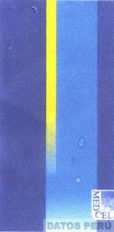 EL LOGOTIPO RECTANGULAR CONFORMADO POR LA DENOMINACION MED CELL ESCRITA EN LETRAS CARACTERISTICAS EN LA PARTE INFERIOR DERECHA DE TRES FRANJAS VERTICALES, EN LOS COLORES AZUL, AMARILLO, CELESTE Y BLANCO, CONFORME AL MODELO ADJUNTO