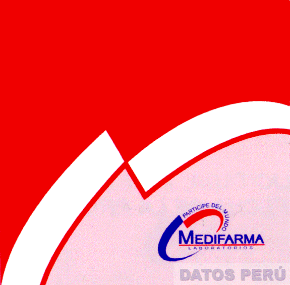 LA FIGURA COMPUESTA POR UN RECUADRO EN LOS COLORES ROJO Y ROSADO SEPARADOS POR DOS FRANJAS BLANCAS Y CON EL LOGOTIPO CARACTERISTICO CONSTITUIDO POR LAS DENOMINACIONES MEDIFARMA LABORATORIOS Y PARTICIPE DEL MUNDO Y UNA ELIPSE, CONFORME AL MODELO ADJUNTO,