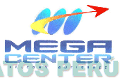 El logotipo conformado por la denominación MEGA CENTER FALCONY GUTIERREZ escrita en letras características y en la parte superior la representación estilizada de una flecha sobre tres figuras ovaladas; todo en los colores azul, rojo, amarillo, celeste y anaranjado; conforme al modelo adjunto