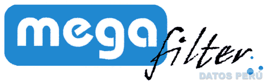La denominación MEGA FILTER escrita en letras características, en los colores azul, blanco y negro; conforme al modelo adjunto.