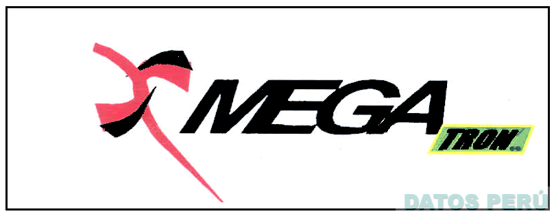 El logotipo conformado por la denominación MEGA TRON'.. escrita en letras características, donde la palabra TRON'.. se encuentra dentro de una figura rectangular; asimismo, antecediendo a toda la denominación se aprecia la letra S escrita de forma estiliza y cruzada por una franja irregular, todo dentro de la figura de un rectángulo y en la combinación de colores rojo, negro, verde y amarillo; conforme al modelo adjunto