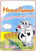 La etiqueta que contiene la denominación MEMO AVENA y figura estilizada de una vaca humanizada abrazando un vaso con leche en un campo cercado; donde se aprecia una nube en colores blanco, negro, rojo, verde, marrón, amarillo, celeste; conforme al modelo adjunto