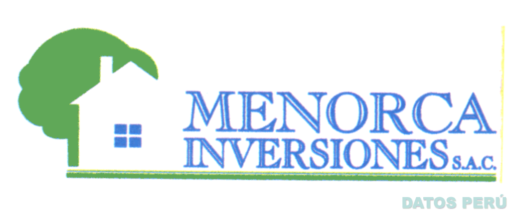 EL LOGOTIPO CONFORMADO POR LA FIGURA DE UNA CASA CON UNA VENTANA; Y DETRAS DE ELLA LA FIGURA DE UN ARBOL; AL LADO DERECHO DE ESTA LA DENOMINACION MENORCA INVERSIONES S.A.C.; TODO SOBRE UNA LINEA HORIZONTAL; EN COLORES AZUL, VERDE Y BLANCO; CONFORME AL MODELO ADJUNTO