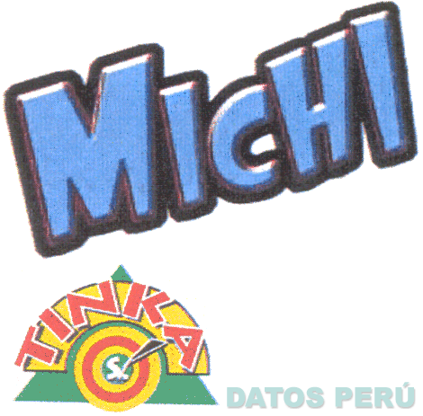 EL LOGOTIPO CONFORMADO POR LA DENOMINACION MICHI ESCRITA EN LETRAS CARACTERISTICAS DE COLOR CELESTE, TODAS CON UN BORDE EN COLOR NEGRO; Y EN LA PARTE INFERIOR IZQUIERDA LA DENOMINACION TINKA ESCRITA EN LETRAS CARACTERISTICAS EN LOS COLORES BLANCO Y ROJO, SOBRE UNA FIGURA SEMICIRCULAR DE COLOR AMARILLO, Y LAS FIGURAS CIRCULARES CONCENTRICAS DE COLORES AMARILLO Y ROJO, CON EL SIMBOLO S/. Y LA FIGURA DE UN ARPON, TODO SOBREPUESTO A UNA FIGURA TRIANGULAR DE COLOR VERDE, CONFORME AL MODELO ADJUNTO