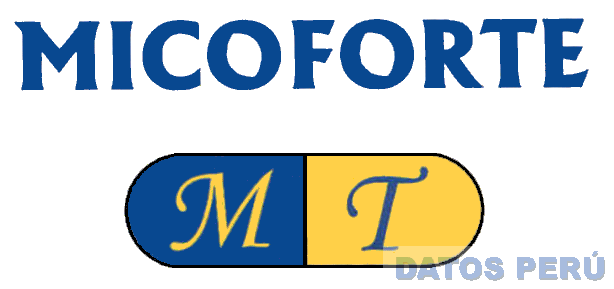 El logotipo conformado por la denominación MICOFORTE escrita en letras características, y la representación estilizada de una cápsula con las letras M T, en los colores azul, amarillo y negro; conforme al modelo adjunto.