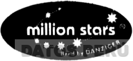 EL DISEÑO DE UN OVALO DENTRO DEL CUAL APARECE LA DENOMINACION "MILLION STARS" EN LETRAS MINUSCULAS DE IMPRENTA Y ALREDEDOR DE ESTA PALABRA UNA SERIE DE ESTRELLAS DISPUESTAS CAPRICHOSAMENTE. EN LA PARTE INFERIOR LA FRASE "BRED BY DANZIGER", SIN REIVINDICAR COLORES, TODO SEGUN MODELO ADJUNTO,