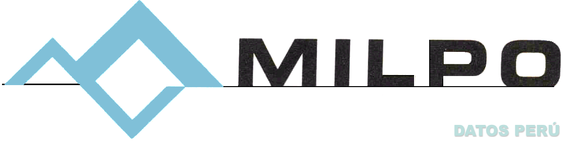 La denominación MILPO escrita en letras características en color negro, en donde se aprecia la intersección de dos montañas rectas en color celeste; conforme al modelo